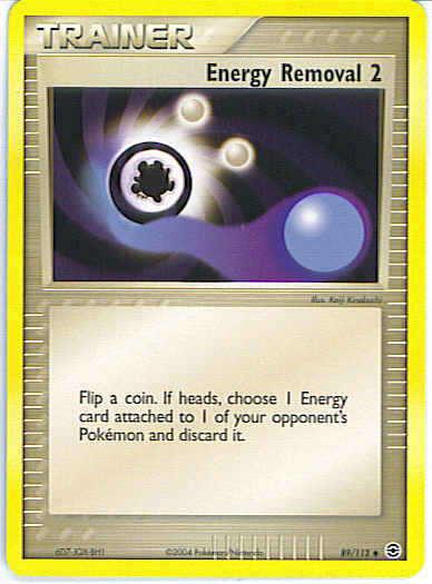 Flip a coin. If heads, choose 1 Energy card attached to 1 of your opponent's Pokemon and discard it.