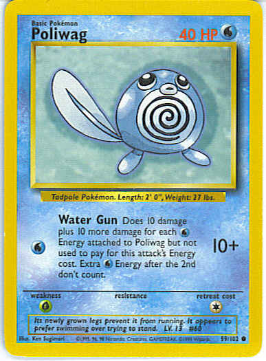 [W] Water Gun (10+) Does 10 damage plus 10 damage for each W attached to Poliwag but not used to pay for this attack (max 2 extra).