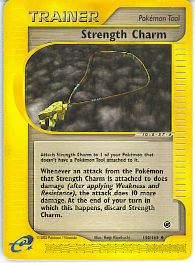 Whenever an attack from the Pokemon that Strength Charm is attached to does damage (after applying Weakness and Resistance), the attack does 10 more damage. At the end of the turn in which this happens, discard Strength Charm.