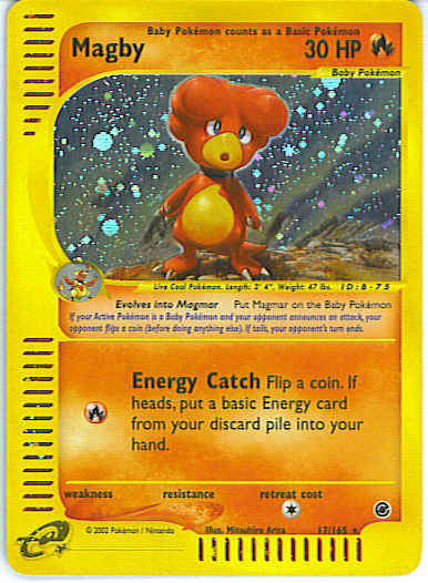 Type | Fire | Pokemon serie | Expedition | Stadie | Baby | HP | 30 | Sjældenhed | Rare | Tilbagetrækning | 1 | Kortnummer | 17 | Evne |