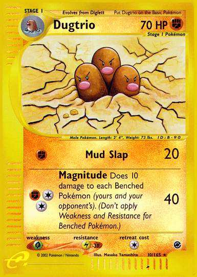 Type | Fighting | Pokemon serie | Expedition | Stadie | Stage 1 | HP | 70 | Sjældenhed | Rare | Tilbagetrækning | 1 | Modstand | L | Svaghed | G | Kortnummer | 10 | Evne |