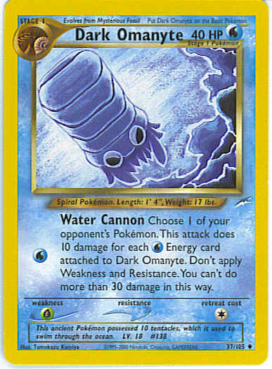 Type | Water | Pokemon serie | Neo Destiny | Stadie | Stage 1 | HP | 40 | Sjældenhed | Uncommon | Tilbagetrækning | 1 | Svaghed | G | Kortnummer | 37 | Evne |