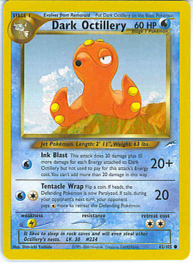 Type | Water | Pokemon serie | Neo Destiny | Stadie | Stage 1 | HP | 60 | Sjældenhed | Common | Tilbagetrækning | 2 | Svaghed | L | Kortnummer | 62 | Evne |