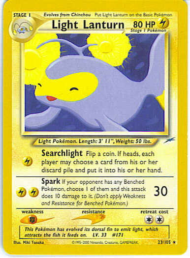 Type | Lightning | Pokemon serie | Neo Destiny | Stadie | Stage 1 | HP | 80 | Sjældenhed | Rare | Tilbagetrækning | 2 | Svaghed | F | Kortnummer | 23 | Evne |