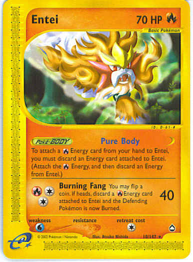 [CCR] Burning Fang (40) You may flip a coin. If heads, the Defending Pokemon is now Burned and you discard 1 R Energy card attached to Entei.