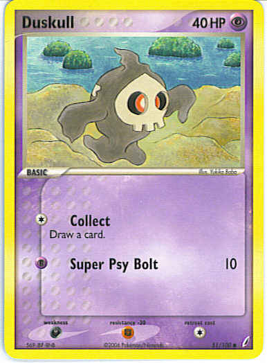 Type | Psychic | Pokemon serie | Crystal Guardians | Stadie | Basic | HP | 40 | Sjældenhed | Common | Tilbagetrækning | 1 | Modstand | F | Svaghed | D | Kortnummer | 51 | Evne | [C] Collect - Draw a card. [P] Super Psy Bolt (10) | Evne2 | [C] Collect - Draw a card. [P] Super Psy Bolt (10) | Kunstner | Yukiko Baba |