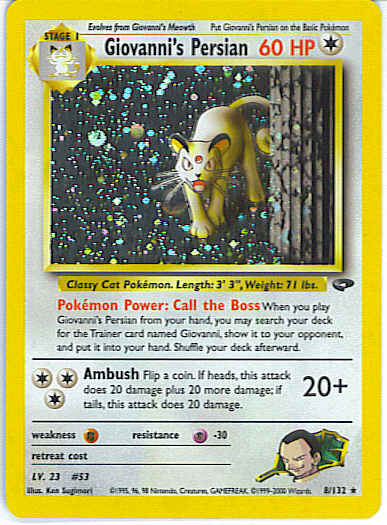Type | Colorless | Pokemon serie | Gym Challenge | Stadie | Stage 1 | HP | 60 | Sjældenhed | Rare | Modstand | P | Svaghed | F | Kortnummer | 8 | Evne |