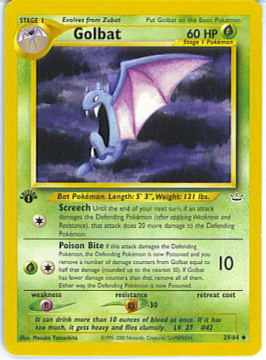 [CG] Poison Bite (10) If this attack damages the Defending Pokemon, the Defending Pokemon is now Poisoned and you remove a number of damage counters from Golbat equal to half that damage (rounded up to the nearest 10). If Golbat has fewer damage counters than that, remove all of them, remove all of them. Either way, the Defending Pokemon is now Poisoned.