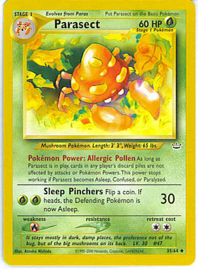 Type | Grass | Pokemon serie | Neo Revelation | Stadie | Stage 1 | HP | 60 | Sjældenhed | Uncommon | Tilbagetrækning | 2 | Svaghed | R | Kortnummer | 35 | Evne |