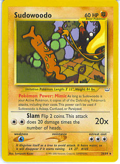 Type | Fighting | Pokemon serie | Neo Revelation | Stadie | Basic | HP | 60 | Sjældenhed | Rare | Tilbagetrækning | 3 | Svaghed | W | Kortnummer | 26 | Evne |
