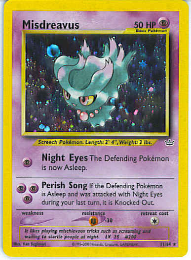 Type | Psychic | Pokemon serie | Neo Revelation | Stadie | Basic | HP | 50 | Sjældenhed | Rare | Tilbagetrækning | 1 | Modstand | F | Kortnummer | 11 | Evne |