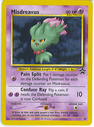 [P] Pain Split - Put 1 damage counter on the Defending Pokemon for each damage counter on Misdreavus.