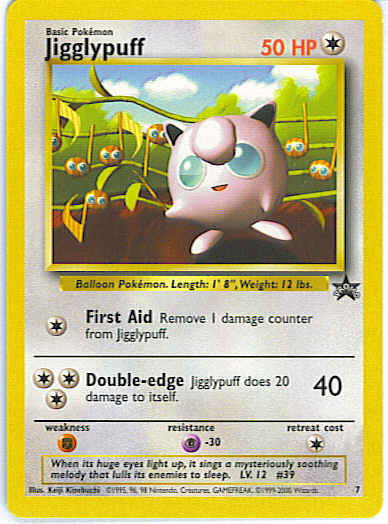 Type | Colorless | Pokemon serie | WoTC Promo | Stadie | Basic | HP | 70 | Sjældenhed | Promo | Tilbagetrækning | 1 | Modstand | P | Svaghed | F | Kortnummer | 7 | Evne |