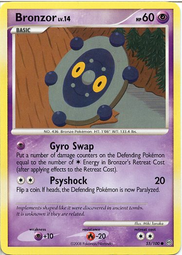 [P] Gyro Swap - Put a number of damage counters on the Defending Pokemon equal to the number of C Energy in Bronzor's Retreat Cost (after applying effects to the Retreat Cost).
