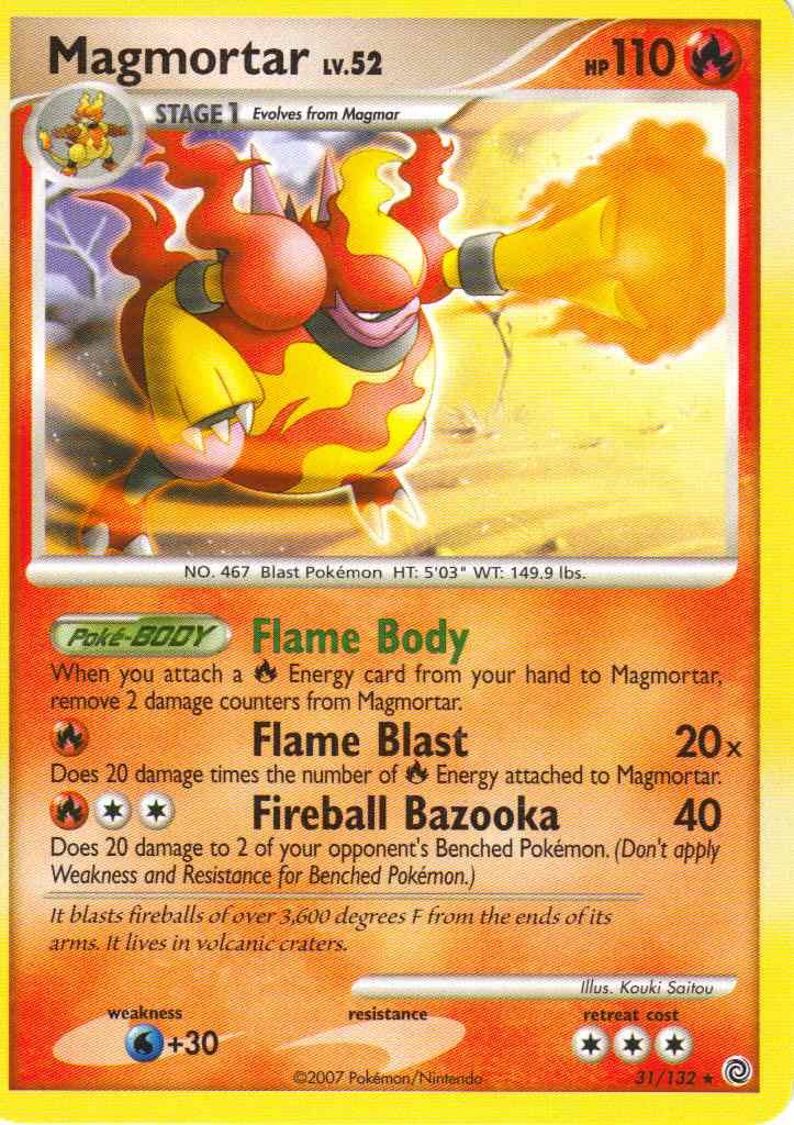 [R] Flame Blast (20x) Does 20 damage time the number of R Energy attached to Magmortar.