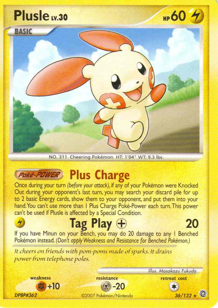 [L] Tag Play (20) If you have Minun on your Bench, you may do 20 damage to any 1 Benched Pokemon instead. (Don't apply Weakness and Resistance for Benched Pokemon.)