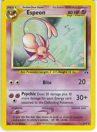 Type | Psychic | Pokemon serie | Neo Discovery | Stadie | Stage 1 | HP | 80 | Sjældenhed | Rare | Svaghed | P | Kortnummer | 1 | Evne |