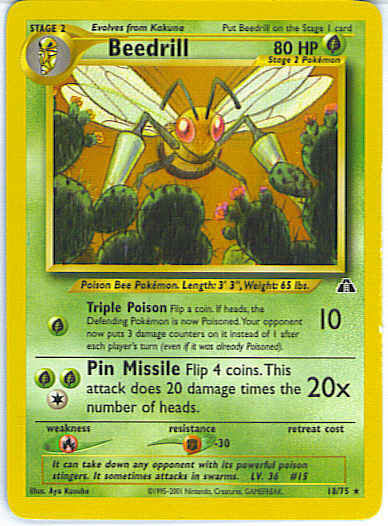 [G] Triple Poison (10) Flip a coin. If heads, the Defending Pokemon is now Poisoned. Your opponent now puts 3 damage counters instead of 1 after each player's turn (even if it was already Poisoned).