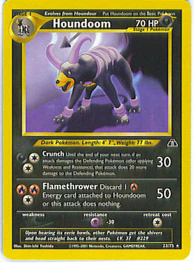 Type | Darkness | Pokemon serie | Neo Discovery | Stadie | Stage 1 | HP | 70 | Sjældenhed | Rare | Tilbagetrækning | 1 | Modstand | P | Kortnummer | 23 | Evne |