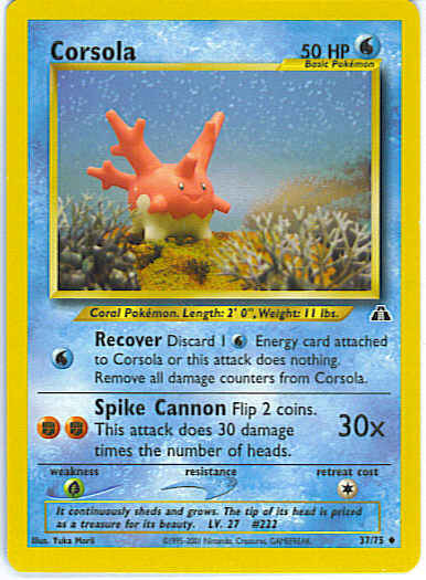 Evne2 [W] Recover - Discard 1 W Energy attached to Corsola or this attack does nothing. Remove all damage counters from Corsola.