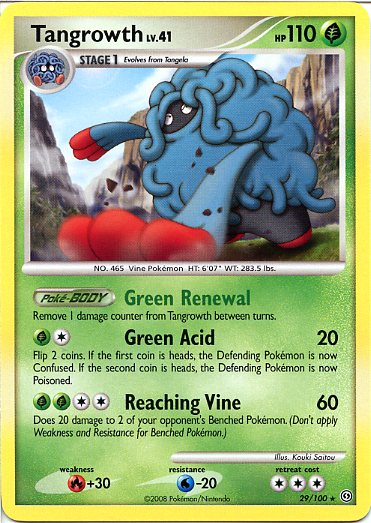 Evne [CG] Green Acid (20) Flip 2 coins. If the first coin is heads, the Defending Pokemon is now Confused. If the second coin is heads, the Defending Pokemon Is now Poisoned.