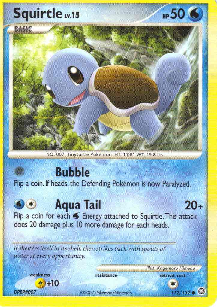 [CW] Aqua Tail (20+) Flip a coin for each W Energy attached to Squirtle. This attack does 20 damage plus 10 more damage for each heads.