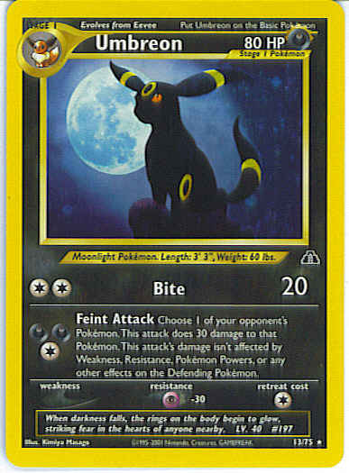 Type | Darkness | Pokemon serie | Neo Discovery | Stadie | Stage 1 | HP | 80 | Sjældenhed | Rare | Tilbagetrækning | 1 | Modstand | P | Kortnummer | 13 | Evne |