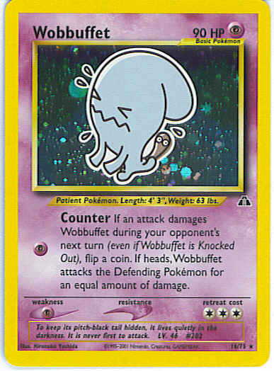 [P] Counter - If an attack damages Wobbuffet during your opponent's next turn (even if Wobbuffet is knocked out), flip a coin. If heads, Wobbuffet attacks the Defending Pokemon for an equal amount of damage.