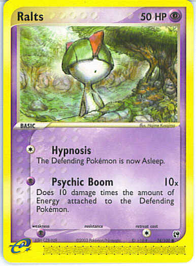 Type | Psychic | Pokemon serie | Sandstorm | Stadie | Basic | HP | 50 | Sjældenhed | Common | Tilbagetrækning | 1 | Svaghed | P | Kortnummer | 74 | Evne | [C] Hypnosis - The Defending Pokemon is now Asleep. [P] Psychic Boom (10x) Does 10 damage times the amount of each Energy attached to the Defending Pokemon.