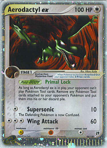 Type | Colorless | Pokemon serie | Sandstorm | Stadie | Stage 1 | HP | 100 | Sjældenhed | Ultra-Rare | Tilbagetrækning | 1 | Modstand | F | Svaghed | L | Kortnummer | 94 | Evne | [C] Supersonic (10) The Defending Pokemon is now Confused. [CCC] Wing Attack (60)