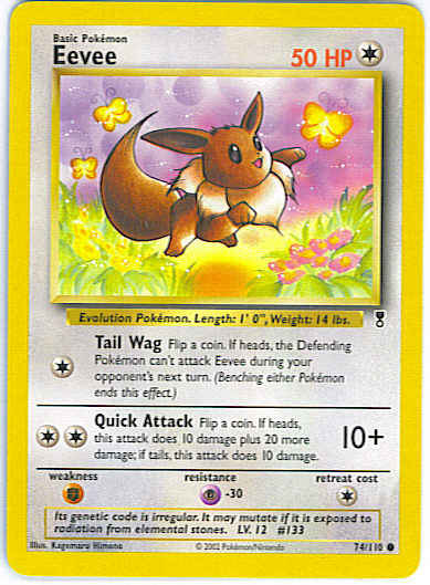 [C] Tail Wag - Flip a coin. If heads, the Defending Pokemon can't attack Eevee during your opponent's next turn. (Benching either Pokemon ends this effect.)