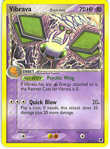 Type | Psychic | Pokemon serie | Dragon Frontiers | Stadie | Stage 1 | HP | 70 | Sjældenhed | Rare | Tilbagetrækning | 1 | Modstand | FL | Svaghed | C | Kortnummer | 24 | Evne | [CCC] Quick Blow (20+) Flip a coin. If heads, this attack does 20 damage plus 20 more damage.