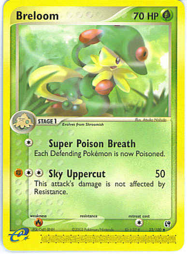 Type | Grass | Pokemon serie | Sandstorm | Stadie | Stage 1 | HP | 80 | Sjældenhed | Uncommon | Tilbagetrækning | 1 | Svaghed | R | Kortnummer | 33 | Evne | [C] Super Poison Breath - Each defending Pokemon is now Poisoned. [CCF] Sky Uppercut (50) This attack's damage is not affected by Resistance.