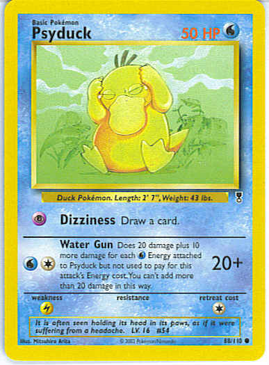 Type | Water | Pokemon serie | Legendary Collection | Stadie | Basic | HP | 50 | Sjældenhed | Common | Tilbagetrækning | 1 | Svaghed | L | Kortnummer | 88 | Evne |