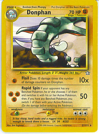 Evne2 [F] Flail (10x) Does 10 damage times the number of damage counters on Donphan.