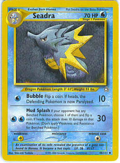 Type | Water | Pokemon serie | Neo Genesis | Stadie | Stage 1 | HP | 70 | Sjældenhed | Uncommon | Tilbagetrækning | 1 | Svaghed | L | Kortnummer | 48 | Evne |