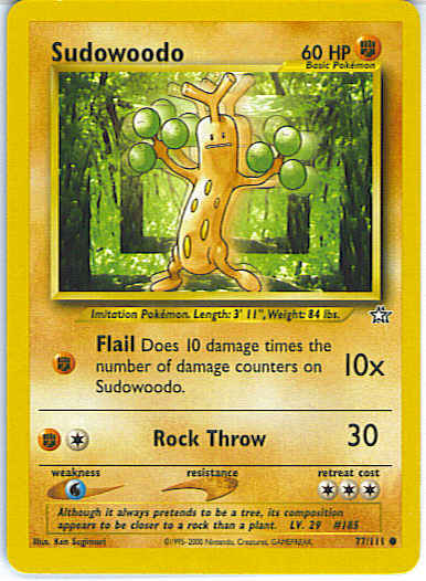 Evne [F] Flail (10x) Does 10 damage times the number of damage counters on Sudowoodo.