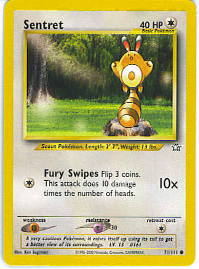 Type | Colorless | Pokemon serie | Neo Genesis | Stadie | Basic | HP | 40 | Sjældenhed | Common | Tilbagetrækning | 1 | Modstand | P | Svaghed | F | Kortnummer | 71 | Evne |