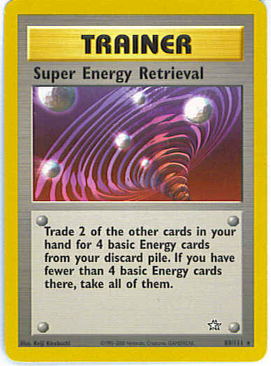 Trade 2 of the other cards in your hand for 4 basic Energy cards from your discard pile. If you have fewer than 4 basic Energy cards there, take all of them.