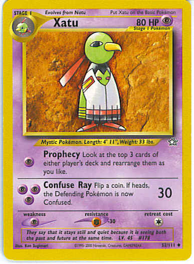 Type | Psychic | Pokemon serie | Neo Genesis | Stadie | Stage 1 | HP | 80 | Sjældenhed | Uncommon | Modstand | F | Svaghed | P | Kortnummer | 52 | Evne |