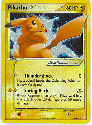 Type | Lightning | Pokemon serie | Holon Phantoms | Stadie | Basic | HP | 60 | Sjældenhed | Ultra-Rare | Tilbagetrækning | 3 | Svaghed | F | Kortnummer | 104 | Evne |