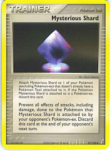 Prevent all effects, including damage, done to the Pokemon that Mysterious Shard is attached to by your opponent's Pokemon-ex. Discard this card at the end of your opponent's next turn.