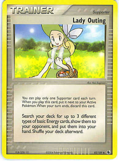 Type | Trainer | Pokemon serie | Ruby Sapphire | Stadie | Trainer (Supporter) | Sjældenhed | Uncommon | Kortnummer | 83 | Evne | Search your deck for up to 3 different types of basic Energy cards, show them to your opponent, and put them into your hand. Shuffle your deck afterward.